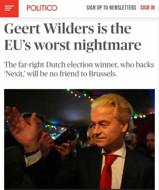 «Несколько фактов о Герте Вилдерсе – лидере крайне правых, которые победили на выборах в Нидерландах: