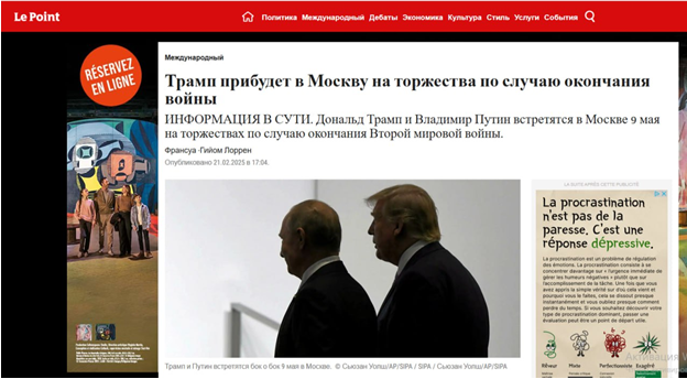 Накануне практически вся мировая пресса с подачи французского издания Le Point сообщила сенсационную новость о, якобы, предстоящем прибытии президента США Дональда Трампа в Москву для участия в праздновании 80-летия Победы Советского Союза в Великой Отечественной войне.