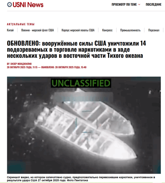 То американскому министерству войны стало казаться, что любая рыбацкая лодка у берегов Латинской Америки обязательно начинена самой отборной наркотической дурью. И на основании этого «кажется» вооруженные силы США стали безжалостно уничтожать там живых людей. Причем, даже не особо скрывая, что понятия не имеют, кто они такие и только «предположительно» являются наркоторговцами.