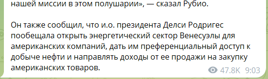 Не так давно, а точнее 25 января с.г. временно исполняющая обязанности президента Венесуэлы Делси Родригес позволила себе дать понять США, что она не вполне готова присоединиться к версии Трампа, согласно которой Венесуэла уже стала американской колонией с правом США выкачать из нее всю наличную нефть: