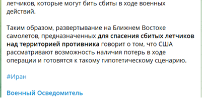На фоне более активного предоставления Тегерану военно-технической поддержки бортами Ан-124–100 и Ил-76ТД ситуация принимает весьма неожиданный и интересный оборот.»