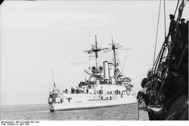 Однако, обстоятельства его гибели вызывают немало вопросов. С одной стороны они, вроде бы, общеизвестны. Это более чем странное поведение корабля в норвежском фьорде, где он шел крайне малой скоростью – 7 узлов и при бортовых огнях прямо под пушками и торпедами норвержского форта Оскарсборг.